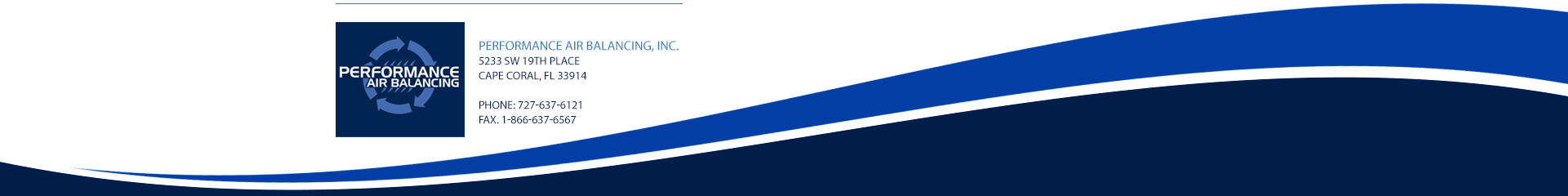 Performance Air Balancing Inc. is an AABC (Associated Air Balance Council) certified HVAC test and balance company that has balanced thousands of commercial, industrial, institutional and, residential systems throughout the state of Florida. Performance Air Balancing Inc. is an independent test and balance agency that has no affiliation or vested financial interest with any manufacturer, vendor, contractor, or installer of HVAC systems. Our independent status ensures that there will never be a conflict of interest that would prevent us from providing honest, accurate, and unbias results.